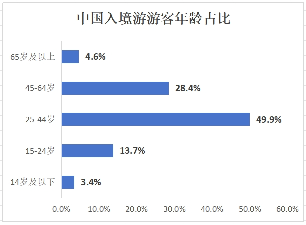 世界旅游联盟此前发布的《中国入境旅游数据分析报告》(以下简称《报告》)显示,按年龄结构划分: