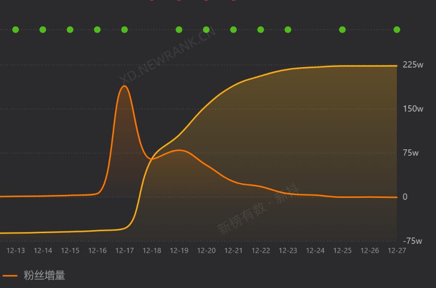 @闻神 粉丝增量趋势( 数据来 源 : 新抖)