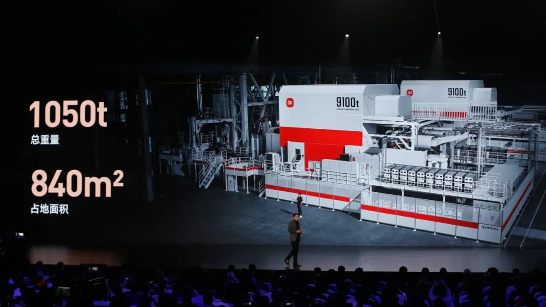 在大压铸方面,小米自研了Xiaomi HyperCasting超级大压铸技术,通过9大工艺,60个设备,433个工艺参数组成了占地面积840平方米,重达1050吨的大压铸岛。