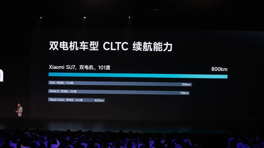 续航方面,小米汽车提供101kWh电池容量,实现CLTC续航800km。