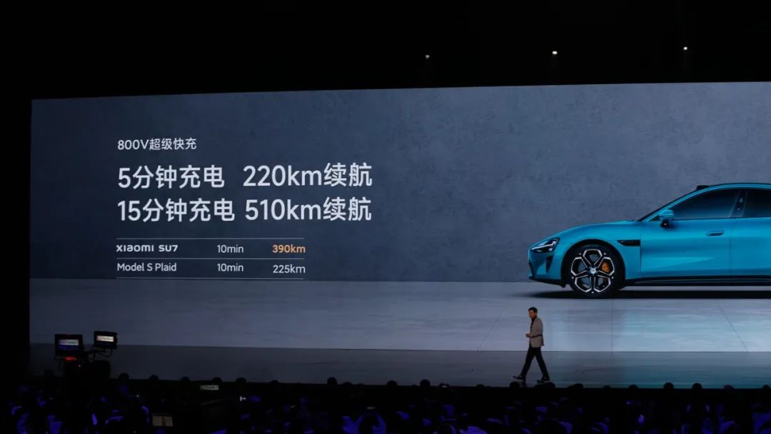 在补能方面,小米SU7借助800V高压平台可以实现5分钟补能220km,15分钟补能510km。