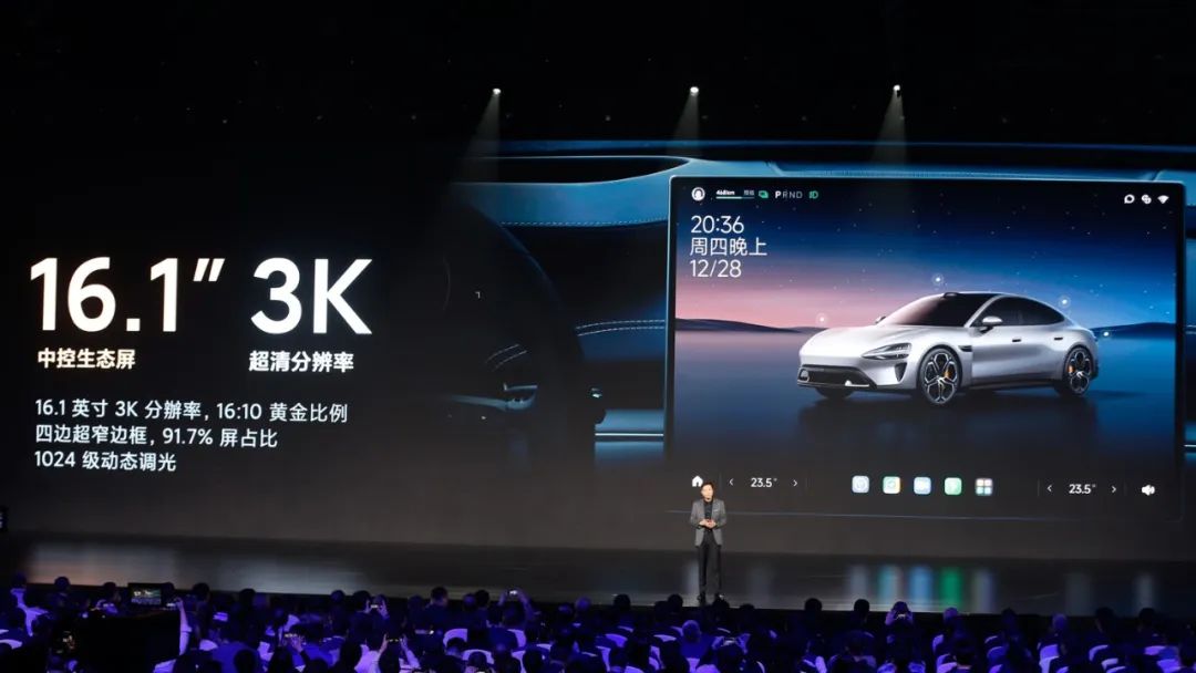 而在智能座舱方面,小米汽车SU7配备16.1英寸3K分辨率的16:10车载“大平板”。