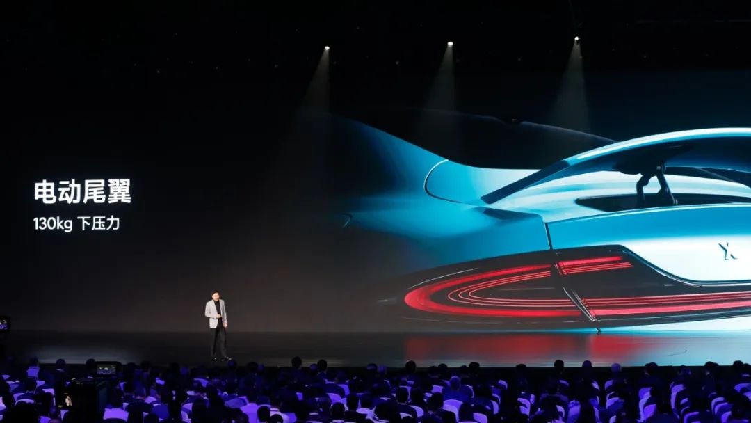 同时,小米SU7全系配备4个角度可调节的电动尾翼,在收起状态可提供最低风阻、展开至最大角度25°可提供最大130kg下压力。