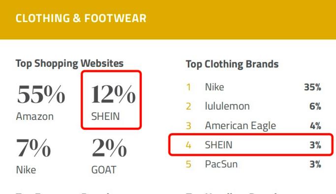 SHEIN在全美市场的品牌影响力,气势如虹。