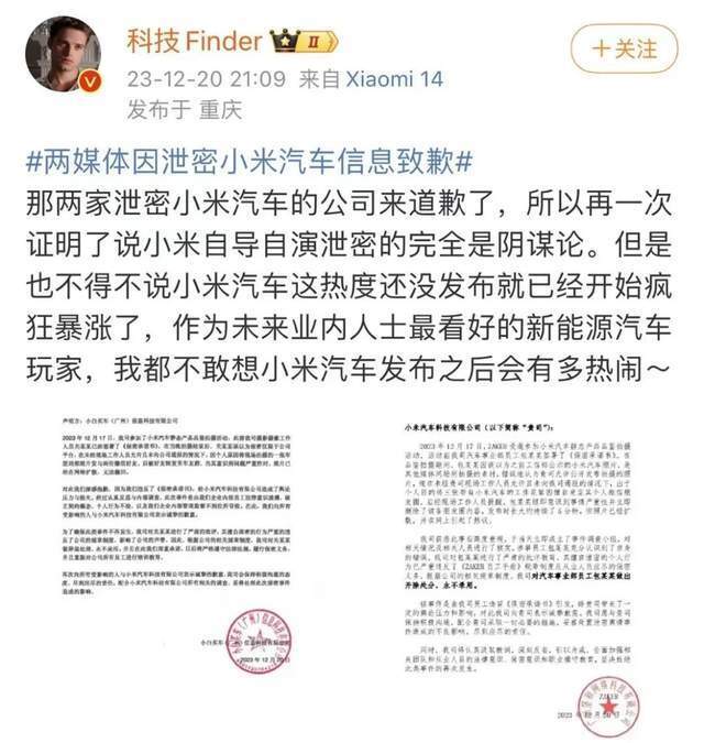 不过,也有科技博主发文表示,两家媒体都出面道歉,这也证明了小米自导自演泄密的说法不成立。