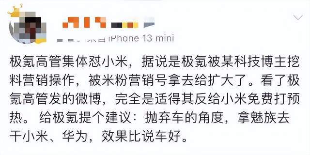 而吉利与小米汽车的切磋也不只一次。此前吉利旗下极氪品牌副总裁赵春林、朱凌以及极氪CMO关海涛齐聚微博怼小米汽车的言论引发行业热议。