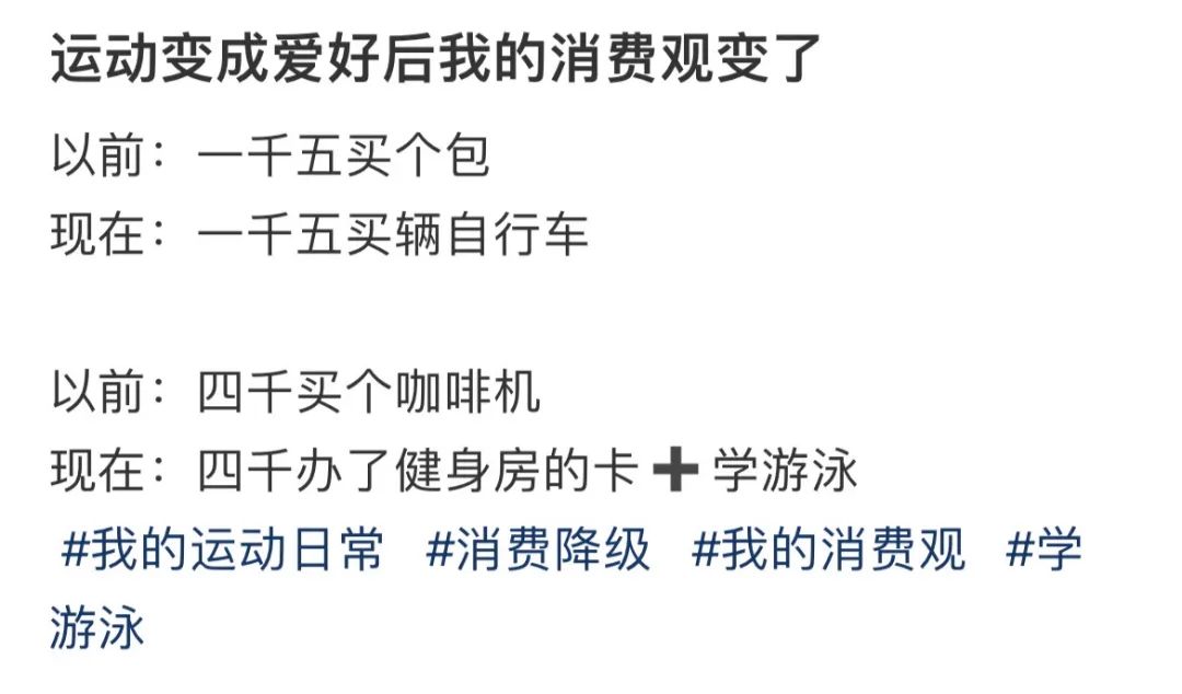 消费欲望不会消失,只会转移。 健身人花钱,有自己的价值观。