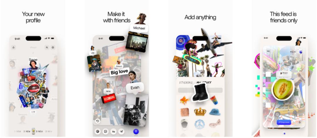 Amo 正试图构建一个独立于 Meta 和其他社交媒体平台的社交生态,而用户一旦接触生态一角,就会不自觉融入整个生态。接下来,我们细细分析三款产品的创新之处。