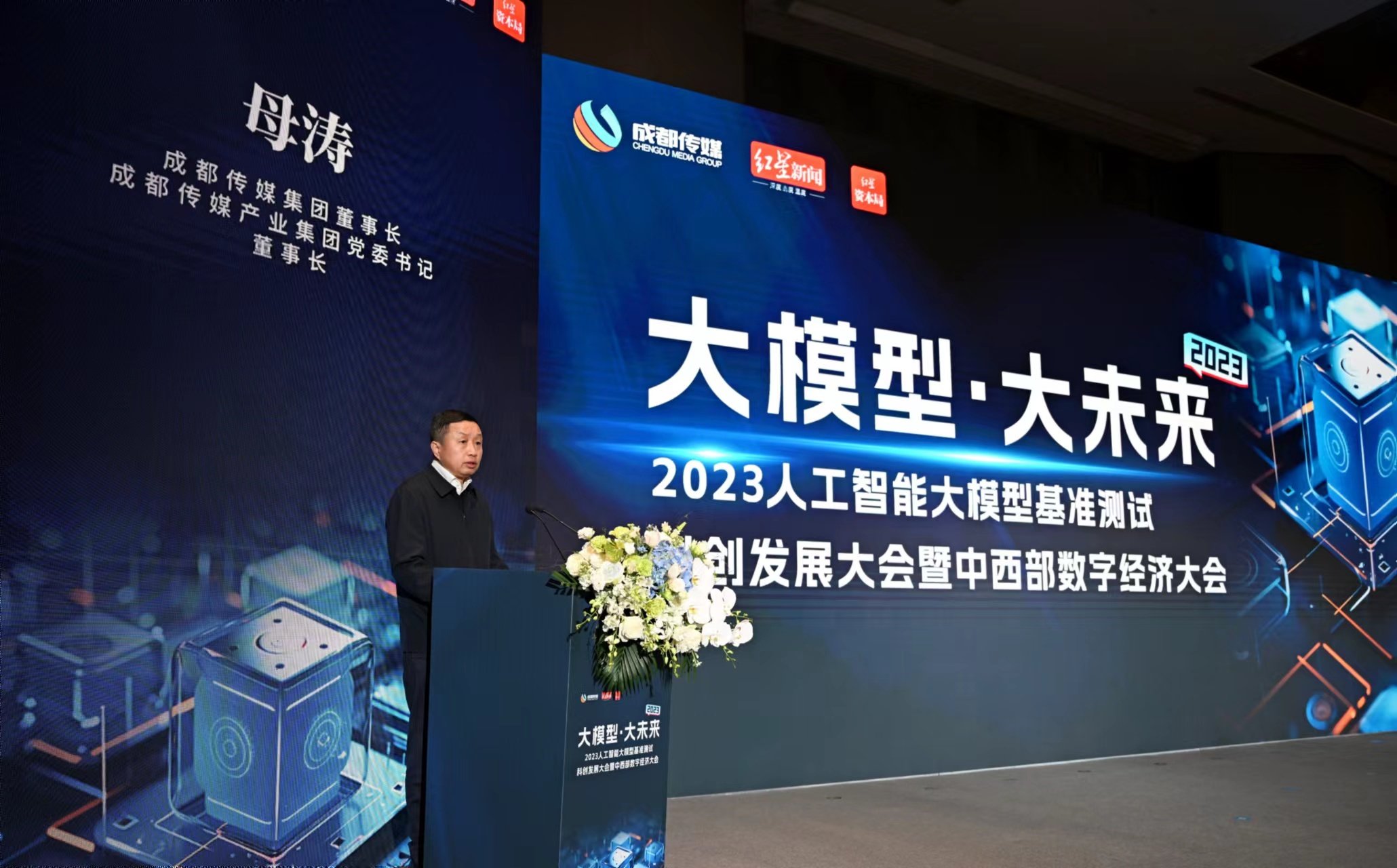 成都传媒集团董事长,成都传媒产业集团党委书记、董事长母涛在大会开幕致辞中表示,前沿技术需要转化为产品或应用,才能发挥其价值。希望此次大会能成为中国数字经济领域沟通交流的媒介、桥梁和纽带,成为国内大模型领域创新发展的策源地。