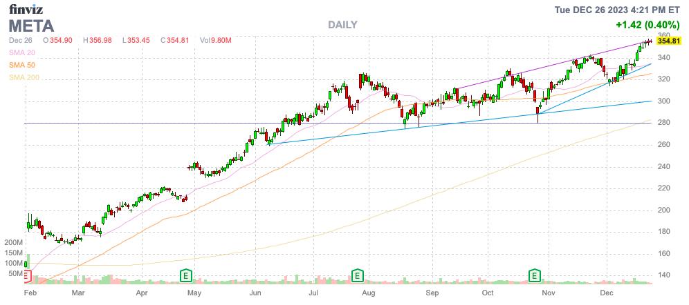 Meta 目前的交易价格接近 355 美元,距 2023 年仅剩 3 个交易日。该股在 2021 年底触及 380 美元以上的高位,尽管在 Reality Labs 上投入了大量资金,但该公司目前的销售额和利润仍创下历史新高。