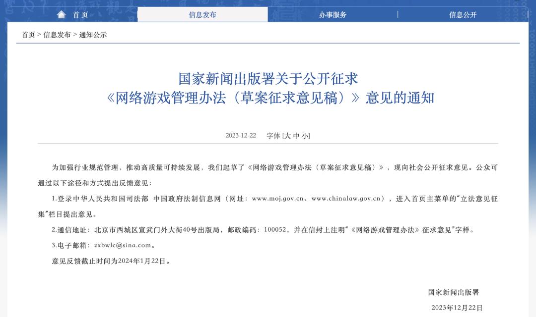 2023年12月,由国家新闻出版署发布的《网络游戏管理办法(草案征求意见稿)》也显示,已批准出版的网络游戏内容发生实质性变动的,或者变更游戏名称、游戏出版单位或主要运营机构的,网络游戏出版单位应当按规定履行相关审批手续。此外,任何单位、个人不得以任何形式转借、出租、买卖、套用《网络出版服务许可证》、网络游戏批准文号、出版物号。