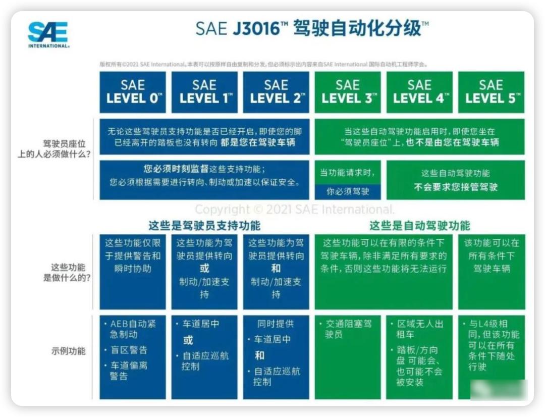 L0 至 L2 级别的驾驶,可以理解为辅助驾驶,它需要驾驶者时刻监管周边情况,完成大部分操作。