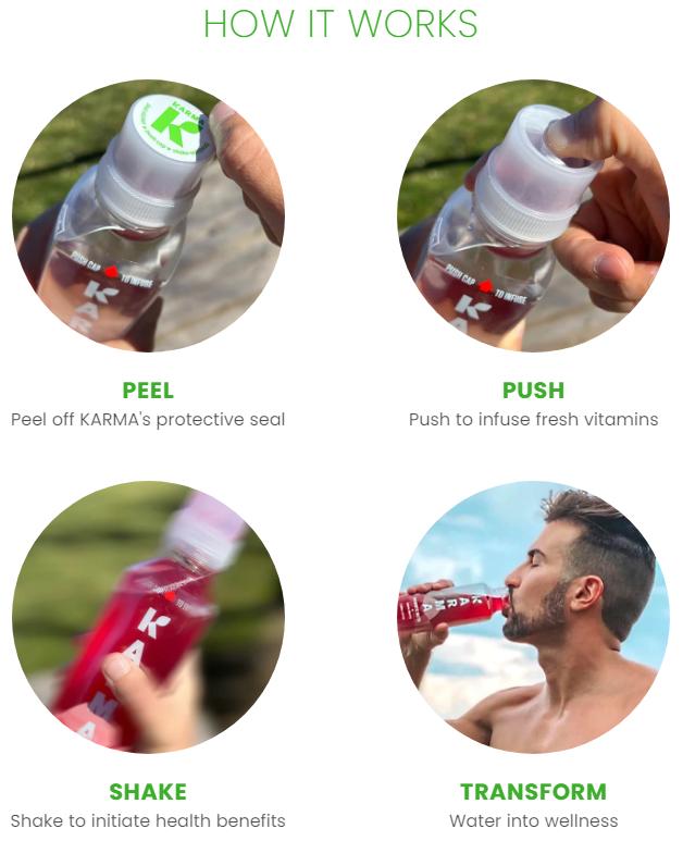 美国饮料品牌Karma Water今年推出的一款能量饮料新品则是选择了按压式的“机关”。产品的瓶盖使用了名为“Push Cap”的专利技术,据了解,该技术便是将能量饮料的有益成分密封在瓶盖中,保证活性。当需要饮用时,只要按压瓶盖,能量饮料的“精华”就溶入了水中,轻轻一摇,就是一瓶色彩鲜艳的能量饮料。