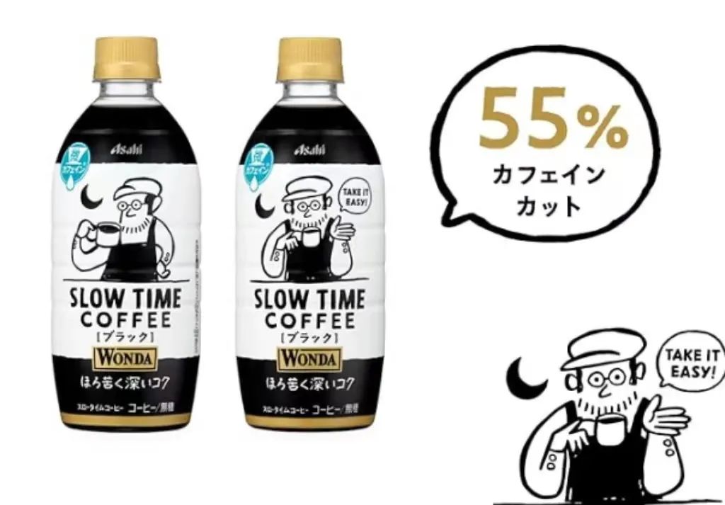 10月,朝日旗下RTD咖啡品牌WONDA推出的黑咖啡产品SLOW TIME COFFEE,采用了“城市烘焙法”(中度偏深的烘焙度),不仅将产品的咖啡因含量降低至比品牌其它咖啡产品低55%的水平,同时保留了咖啡风味,不至于出现低因咖啡的咖啡味淡的问题。
