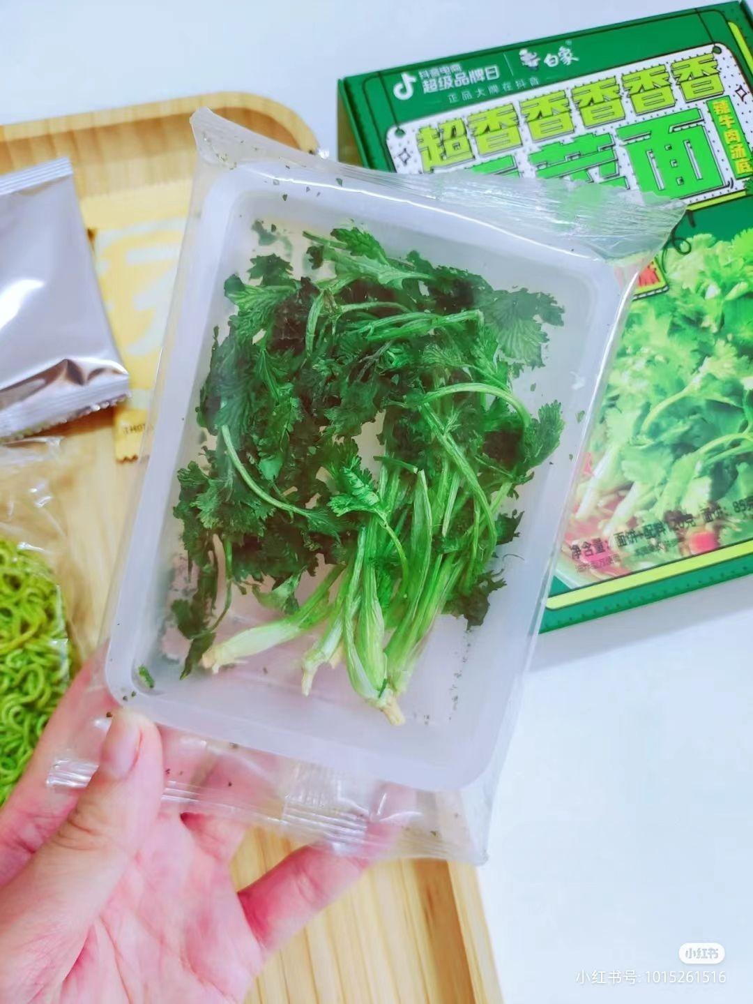而这包香菜不仅量多,还真正做到了新鲜。这包香菜使用了FD冷冻干燥技术,使得香菜的口感、色泽和营养价值都还原了香菜自然的风味。面煮好后,一大包香菜撒在面上,浓浓的香菜味瞬间四溢,香菜党狂喜。