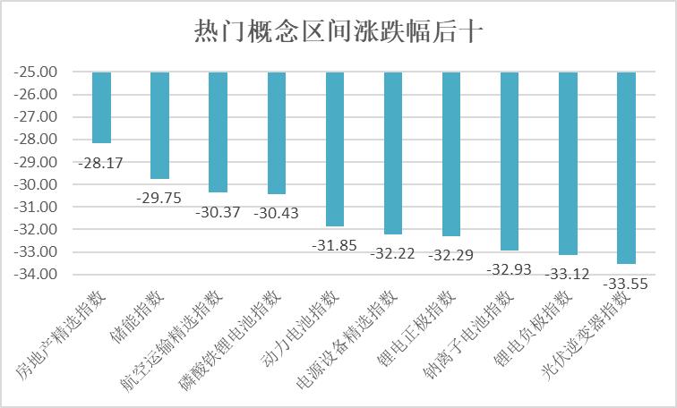 而跌幅较大的板块则集中在光伏逆变器、锂电负极、钠离子电池、锂电正极、电源设备、动力电池、磷酸铁锂电池、航空运输、储能、房地产等板块。