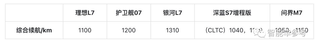 - 增程:理想L7、问界M7、深蓝S7;
