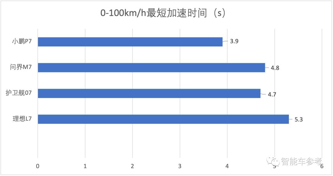 而按照已经公开的百公里加速数据来看,小鹏P7i性能版(四驱)表现最突出,为3.9s;其余车型加速表现均在5s-8s左右。