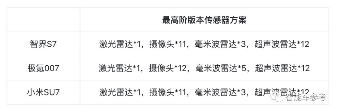 并且,三款车型的智驾版,或者说最高阶的传感器方案都不约而同包含了1颗激光雷达。