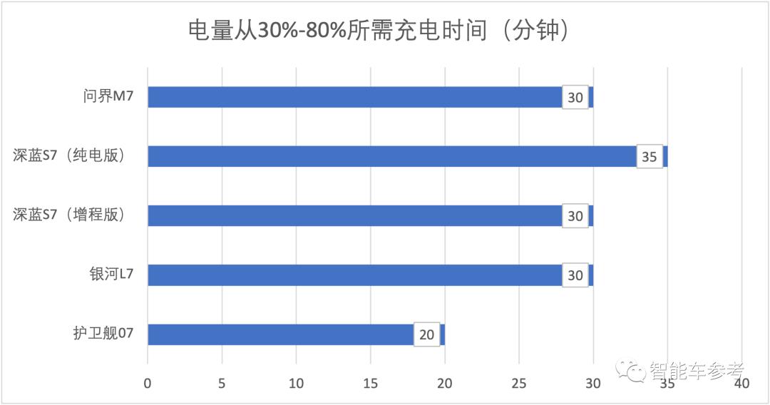另外,以上车型均支持快充,电量从30%到80%的充电最短时间分别为: