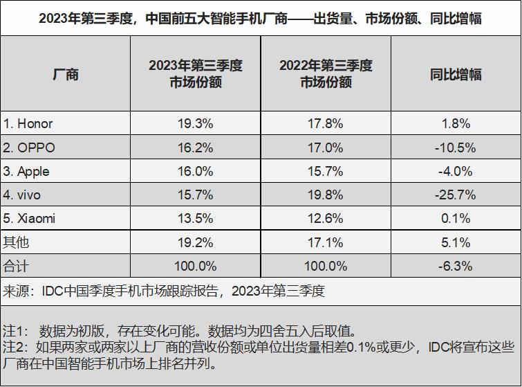 2023年,荣耀的手机业务迎来了逆势增长。第三季度,荣耀中国市场份额及出货量重返第一。在欧洲市场,荣耀时隔三年重返欧洲前五,而且是唯一增长的品牌。