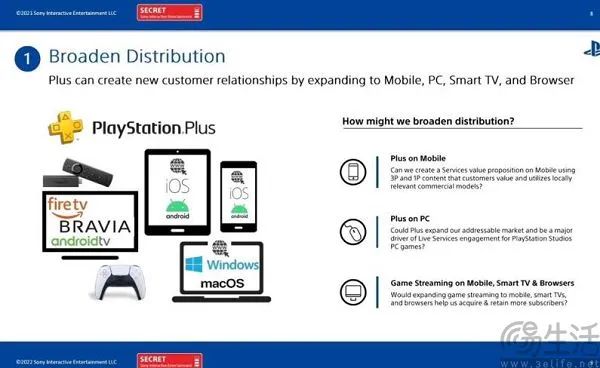 根据相关文件显示,索尼内部将这一计划称为“Services 3.0”,旨在“通过多平台统一订阅方案来吸引更多的潜在用户”。具体来说,就是将PS Plus订阅服务从现有的PlayStation平台,扩展至PC、手机、平板电脑、浏览器,以及智能电视等主流终端。其中还提及,“Services 3.0”的具体操作是在其中整合R星的GTA+、Disney+、Spotify会员,乃至米哈游的游戏订阅等服务,从而扩展跨平台PS Plus订阅方案。