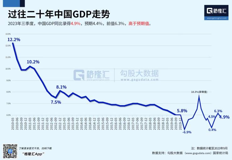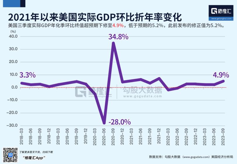 美国三季度GDP已经升到了4.9%,虽然低于预期的5.2%,但显著强于疫情之前水平。