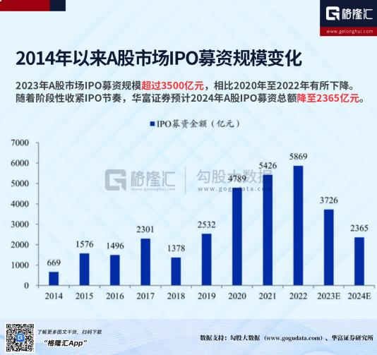虽然A股指数表现不好,但2023年A股确实全球新股融资最大的市场。2023年,A股IPO募资规模累计超过3500亿元,这比2022年的5869亿有了很大的下降。