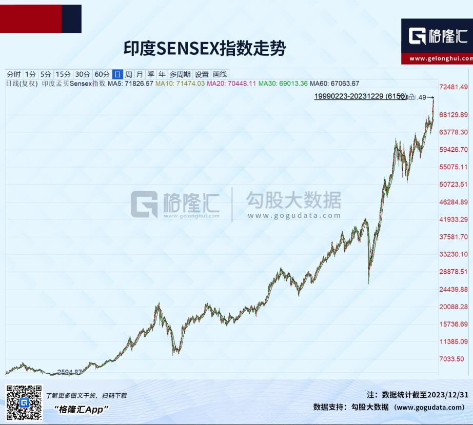 这一年,印度股市累计上涨了18.47%,虽然涨幅不是最大,但长期势头却是猛得惊人,甚至与美股纳指有着很高相似度。