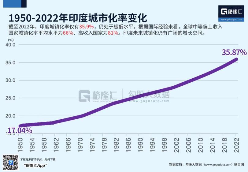 近十年来印度的城市化在不断攀升,才来到36%左右,而对比同样人口规模的我国是65%,就可以看出印度的城市化率还有很大的提升空间。