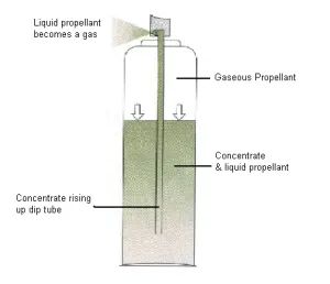 当压缩喷雾罐的阀门打开时,罐内压力降低,导致加压液体在罐子上半部分形成气体层,将下层的液体推出罐子。而液体流过喷嘴时,这些推进剂也会因为压力的降低,迅速膨胀为气体,让液体雾化,形成极细的喷雾。在这个过程中,石油基气体可能会占喷雾量的40%。