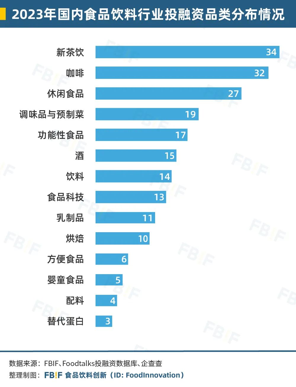 这14大品类分别是酒、休闲食品、咖啡、新茶饮、替代蛋白、方便食品、调味品与预制菜、食品科技、烘焙、乳制品、饮料、配料、功能性食品、婴童食品(基于去年相同标准与分类,我们新增了“功能性食品”和“婴童食品”分类;茶、咖啡、酒、烘焙以外的线下餐饮品牌,不计入本次盘点)。