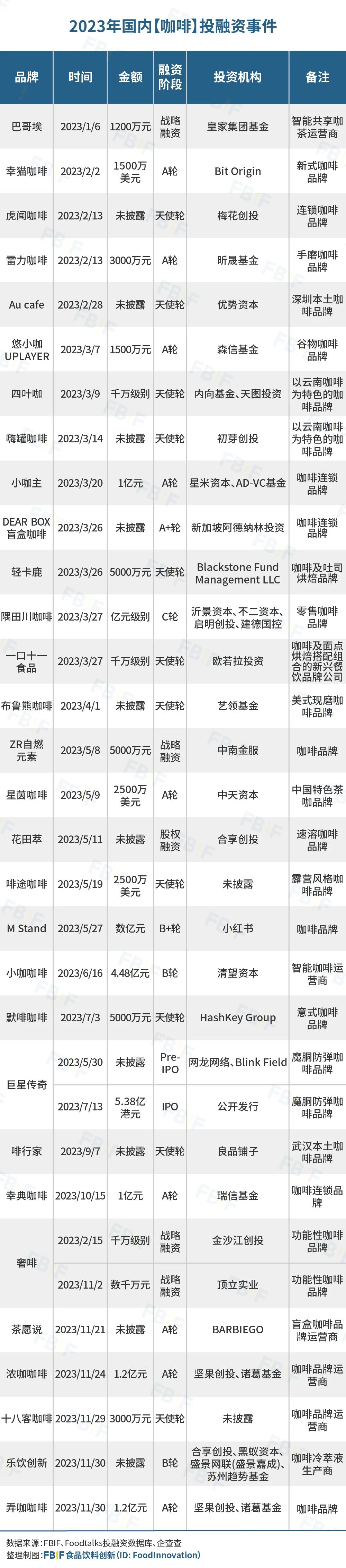 2023年咖啡品类上共发生了32起融资事件,与去年的29起相比增加了3起。