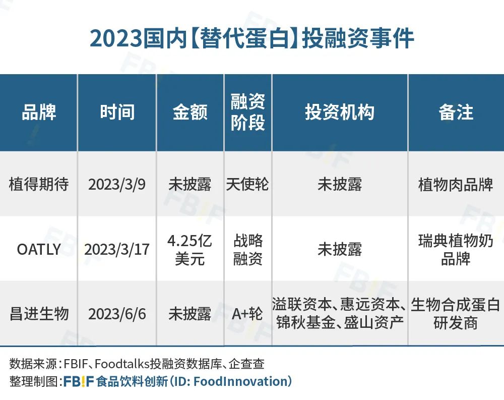 2023年,替代蛋白赛道上,有3家企业拿到融资,其中有两家主推植物基产品。