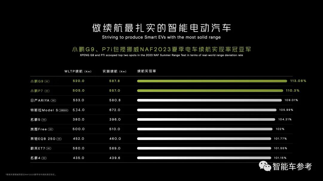 充电10分钟,增加300km续航。何小鹏尤其强调了自家800V架构续航达成率的“扎实”:反向虚标。