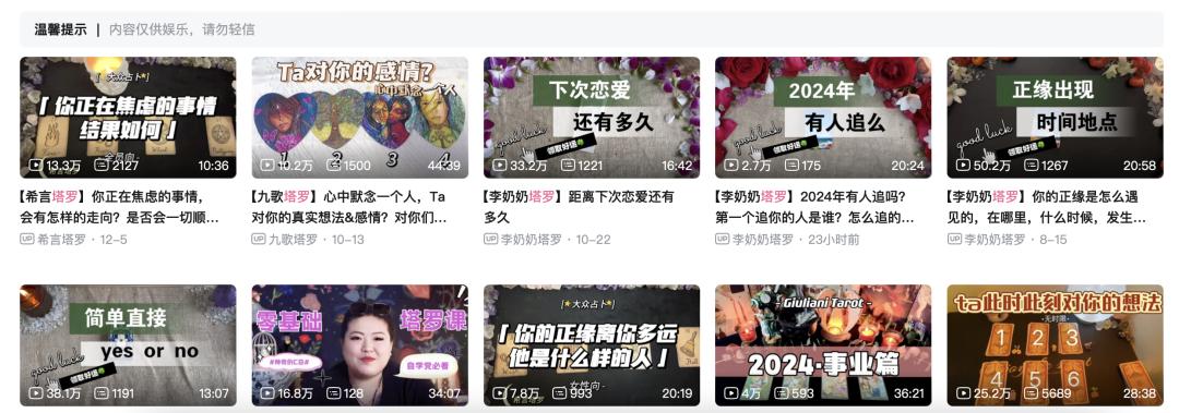 世超时不时,也会在平台上刷到一些塔罗牌分析的视频。