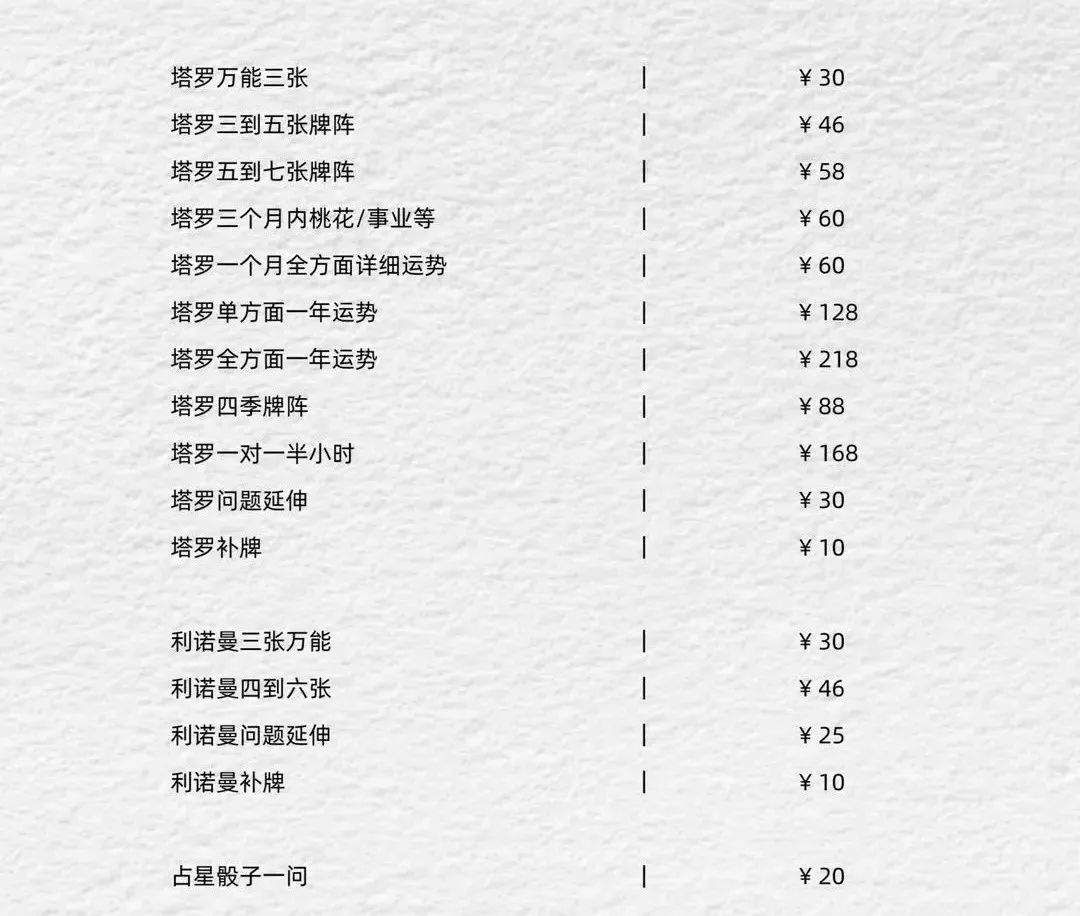 如果大伙儿对于占卜薪资水平的认知还是不够直观的话,可以再看看这张价格表。