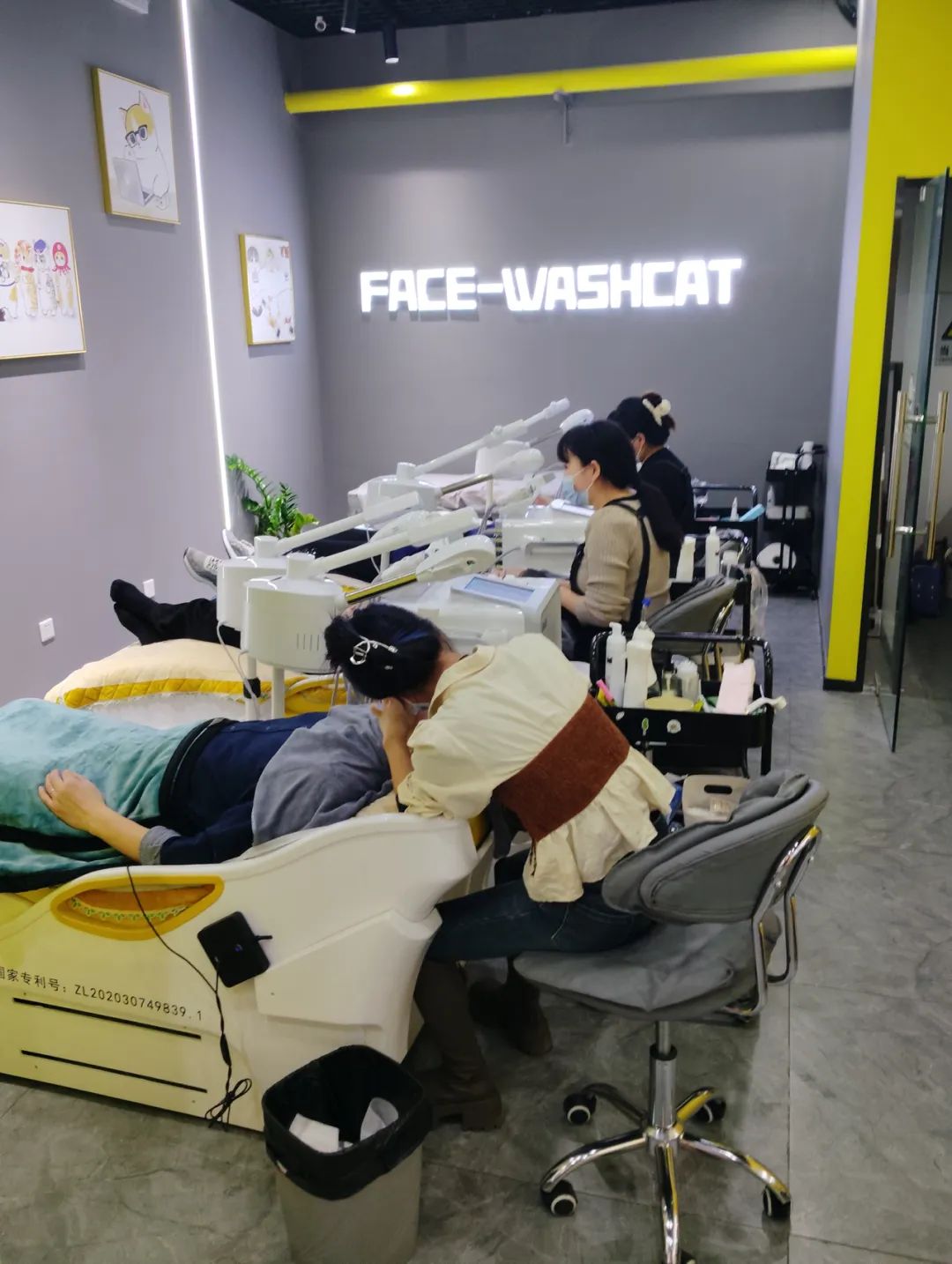 洗脸猫店员表示,忙不过来,真忙不过来。一个门店一般有5张美容床位,配备5位洗脸师,平均40分钟洗一张脸,几乎没有空转的时候。