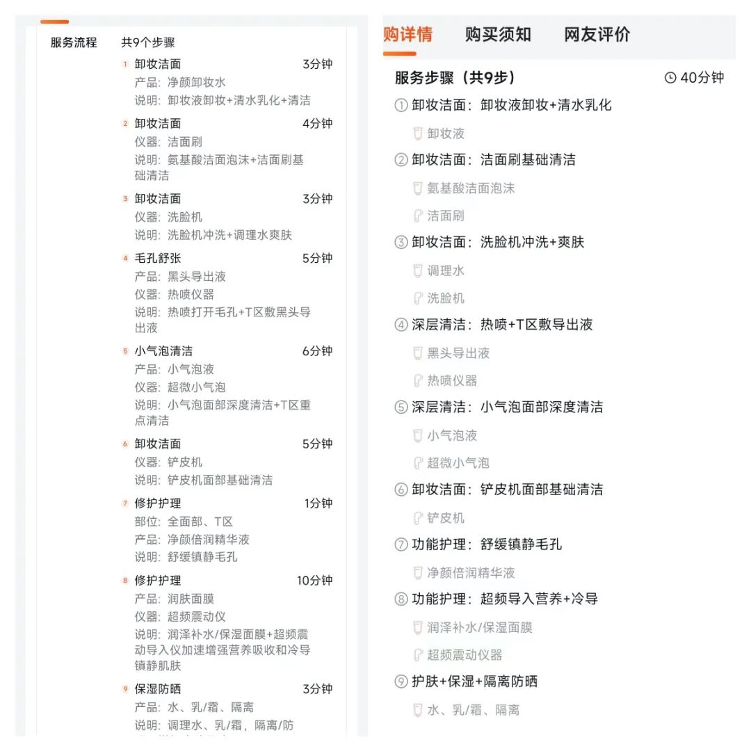 更重要的是,在具体的项目说明中,洗脸猫提供的6个项目在小邱看来实在是大同小异,普通清洁项目的流程和深度清洁项目的流程几乎可以一键消消乐。