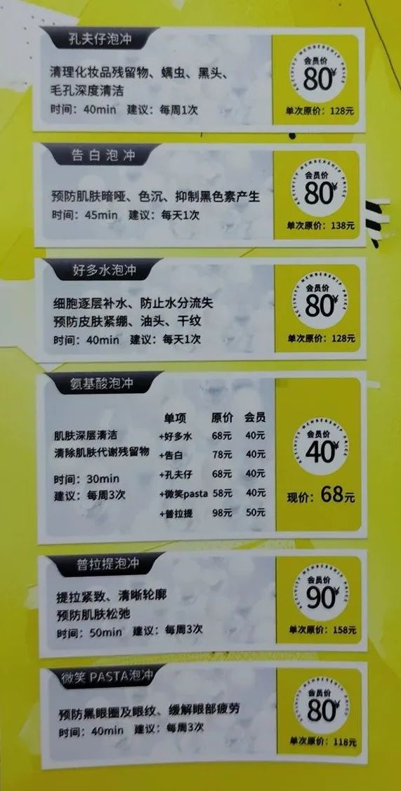最后,可能因为“舒服”和“感觉脸干净了”,自愿或在推销下购买储值卡成为会员,用会员价再次消费。