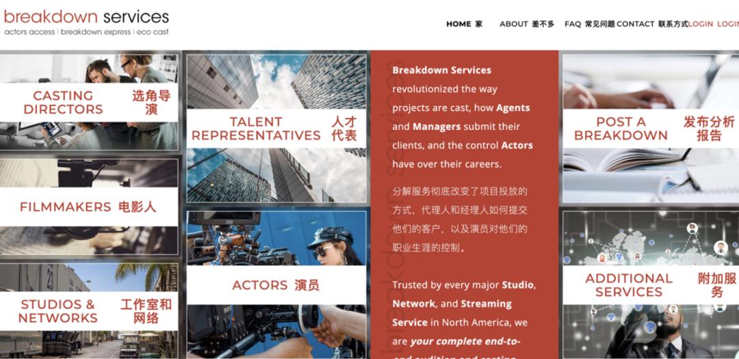 在美国,只有纽约和洛杉矶的演员是富足的。经纪公司、选角导演、制片人都会把信息公布在网上,选角的工作一般在平台上就能完成。