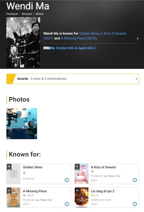 马文迪的IMDB主页,团队里几乎每个人都有院线项目的经历。(图/ IMDB截图)