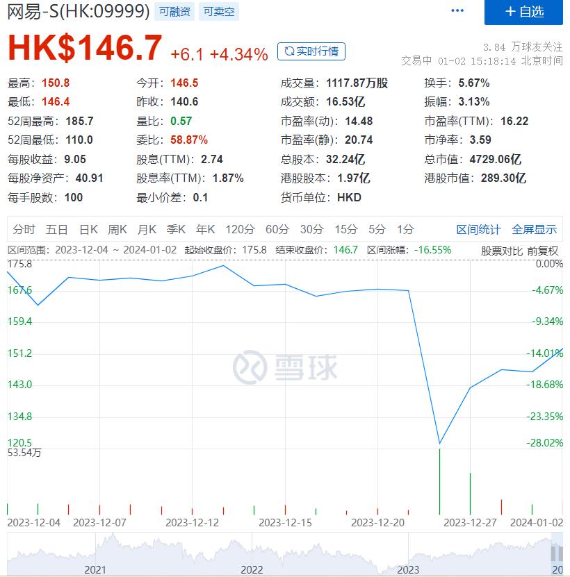 直到几天前游戏新规征求意见稿的推出。新规中表示,包括每日签到、首充福利等将不再被允许,这让网易的股价从每股159.8港元跌至122.6港元,震荡明显,而在网易传出与暴雪的绯闻后,股价又有回升的趋势。