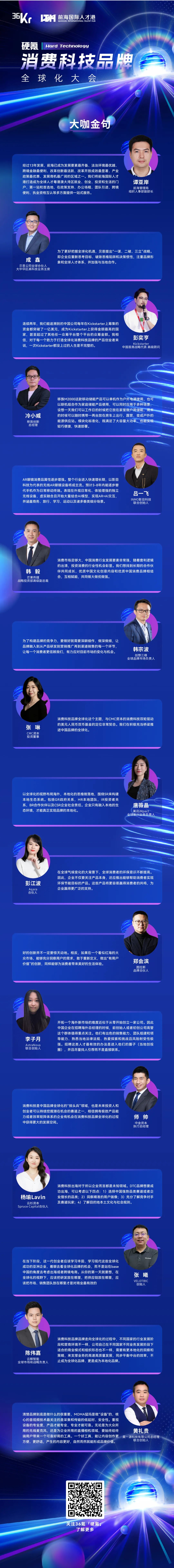 在此背景下,12月27日,36氪·硬氪在深圳前海召开了「硬氪」消费科技品牌全球化大会。大会邀请了行业大量一线品牌、投资机构、科技公司、专家学者,共设立13个主题演讲、3个圆桌。主题涉及线下渠道搭建、产品力打造、品牌启动、用户互动、硬件供应链管理等等。大会现场氛围热烈,嘉宾演讲金句频出,观点犀利、交锋不断。以下为本次活动嘉宾经典观点摘要: