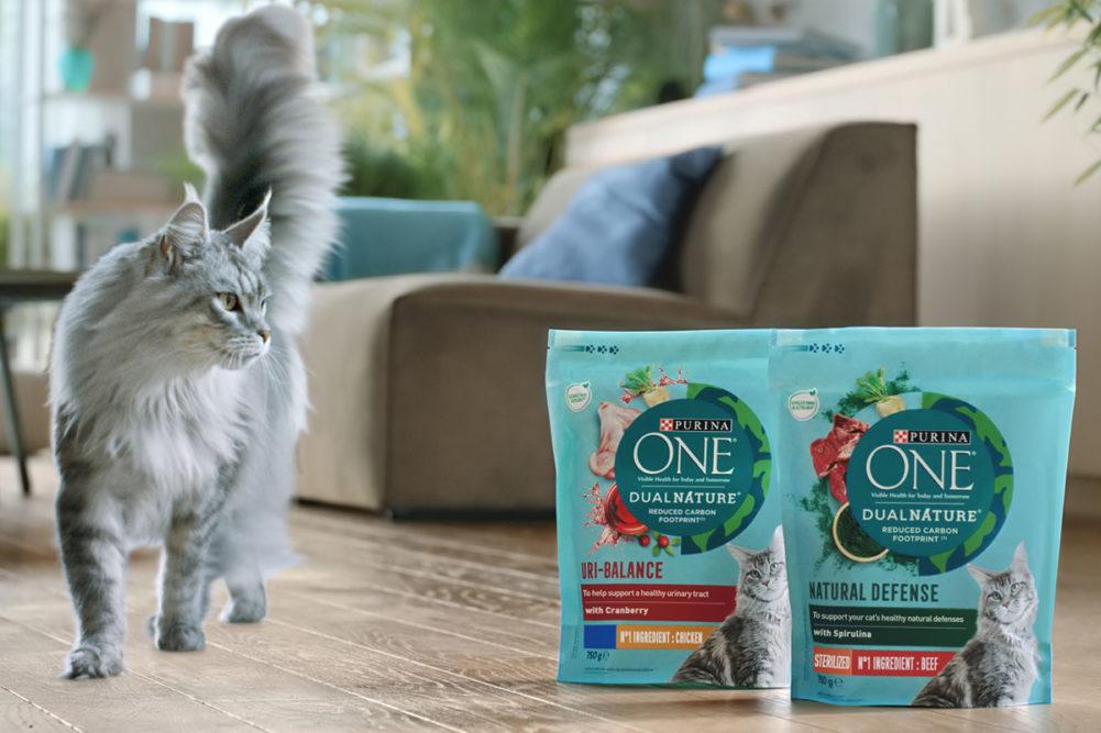 除了植物基和人造肉,碳减排也是落地 ESG 的一种方式。2023 年 10 月,雀巢旗下宠物营养品牌「普瑞纳」在欧洲推出了第一款碳减排猫食品 ONE DualNature 。据公司称,与 2019 年基准相比,该系列的碳足迹减少了 15.7%。
