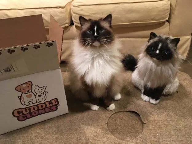 「Cuddle Clones」的代表产品,是一款宠物仿真克隆玩偶,用以纪念丧宠,承载思念。官网定价 349 美元,上传照片和文字描述特征之后,由艺术家手工制作,到货后不喜欢可退款 100% 。