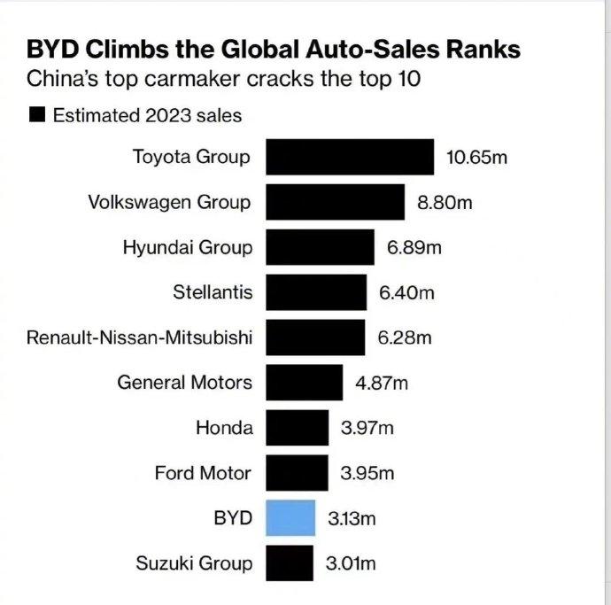 如今300万的销量目标达成,也让比亚迪超越铃木成为了全球第九大车企。