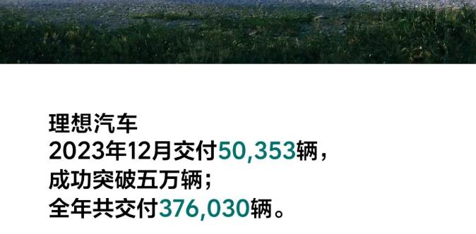 2023年,理想汽车共交付376030辆,同比增长182.2%,超额完成了30万辆年度目标,完成度达到125%。