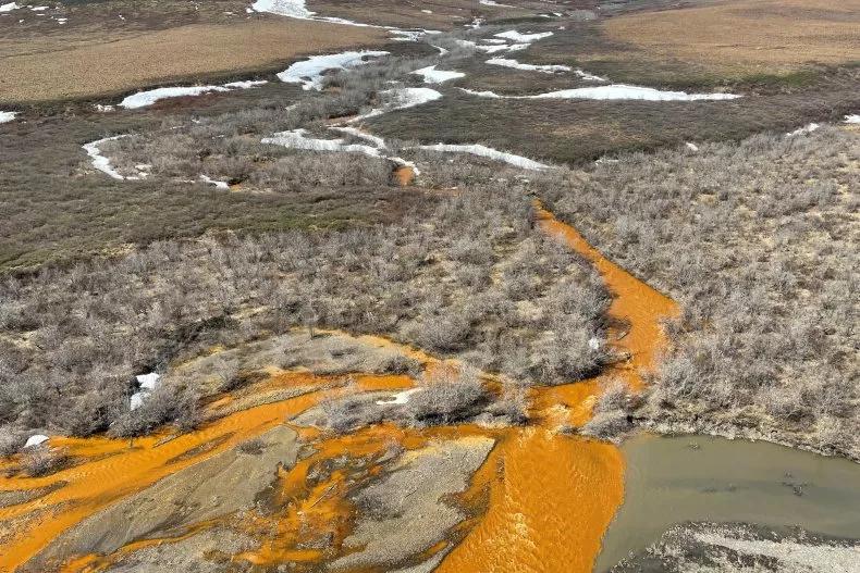 原本在如此偏远地区的河流,理应是不受到环境污染所影响的。1975年,当作家约翰 · 麦克菲(John McPhee)在阿拉斯加的河流上坐船行进时,说道“这是我所见过的最清澈、最纯净的水”。但现在这里110多公里长的河流“生锈”了。在橙色的河水里,科学家发现了大量的氧化铁矿物,还包含大量的酸性物质。