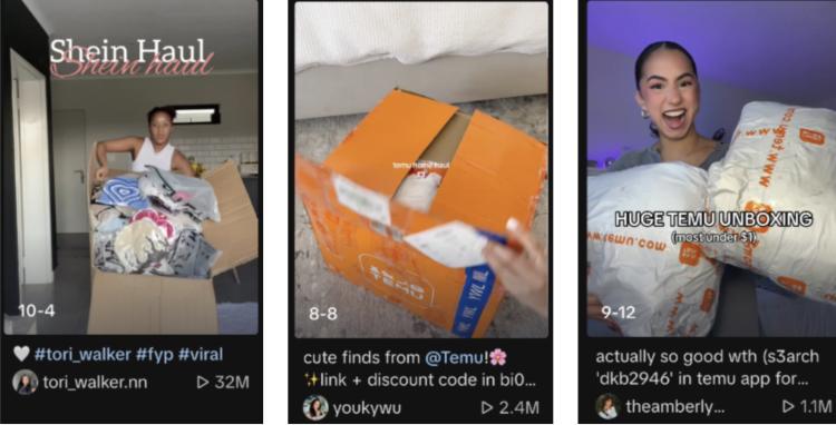 不过今年,视频“主角”变得更统一了,SHEIN 和 TEMU 几乎成为话题热门中的“常驻”: